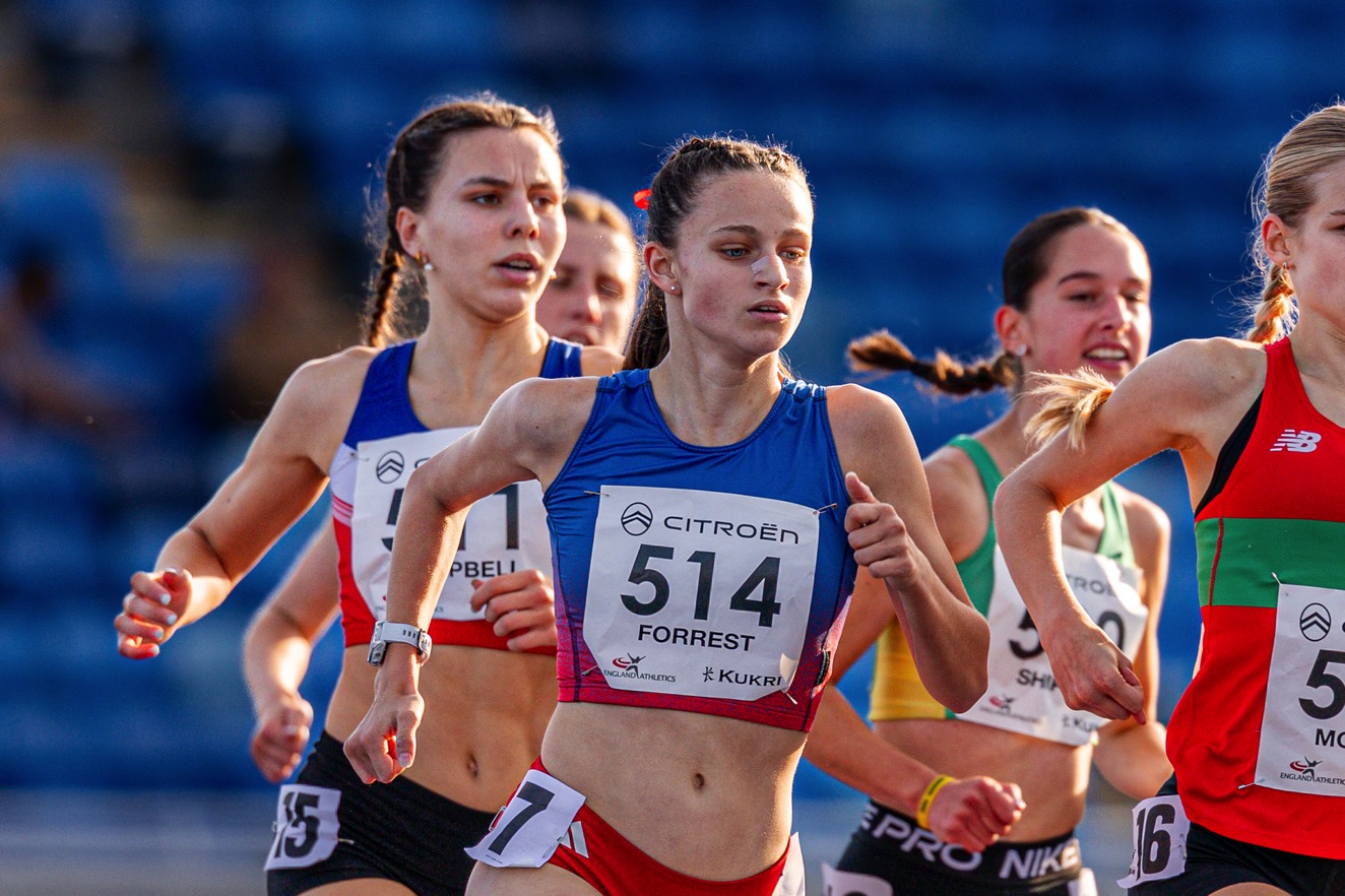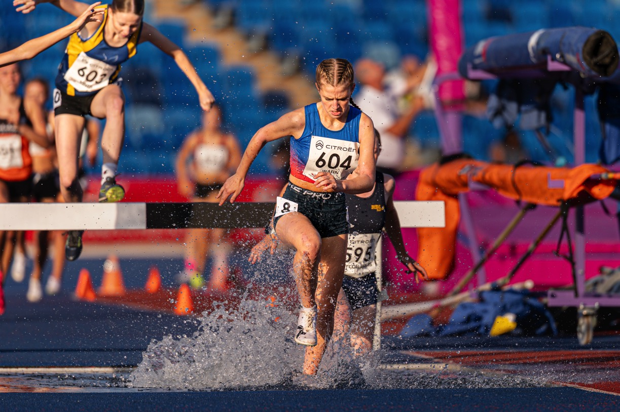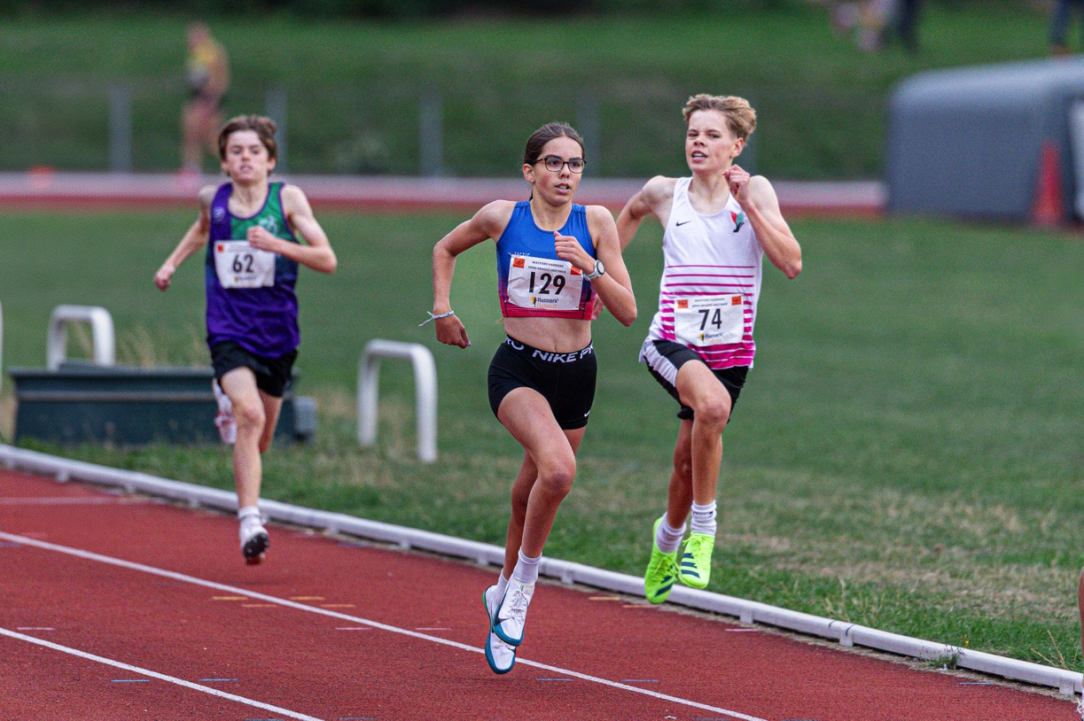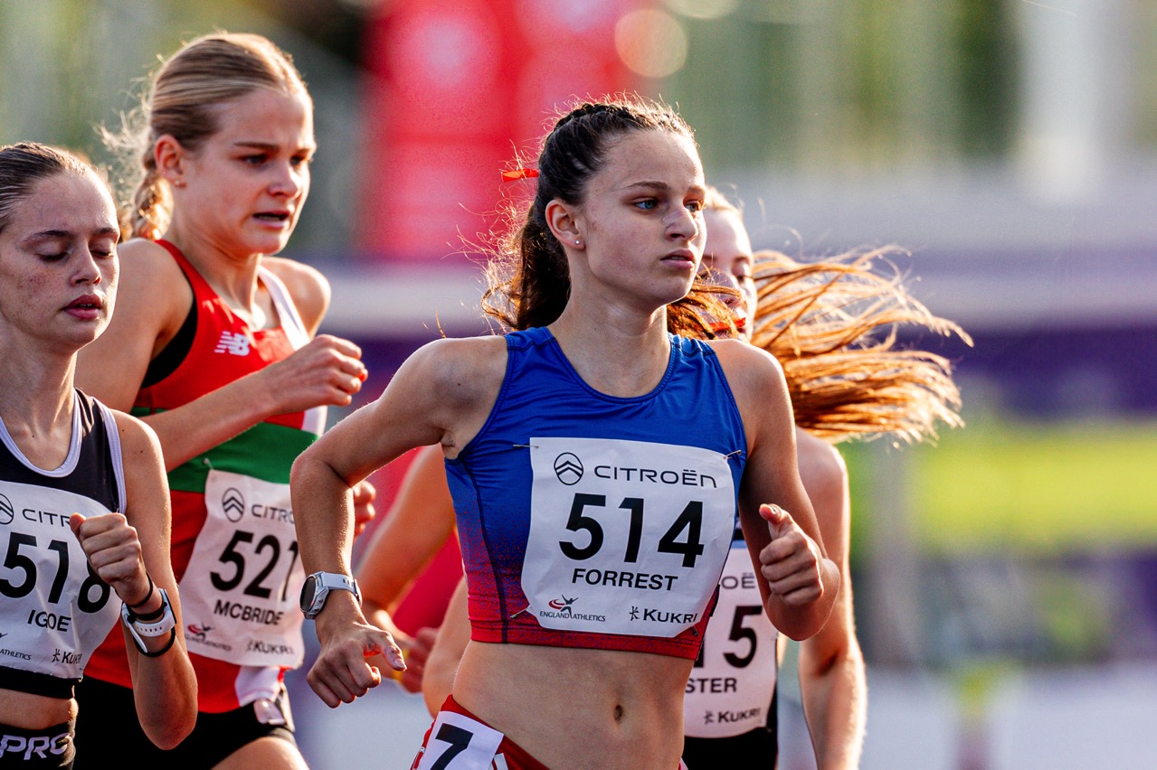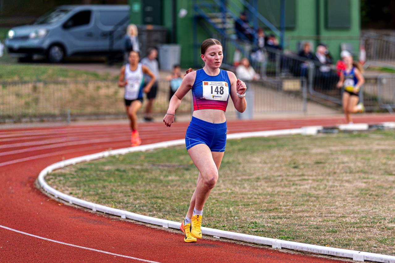 The English National age group Championships in Birmingham were a great end to the main competitive season for our athletes. Huge congratulations to Evie Warn who won bronze in the U17 1500m steeplechase. A brilliant effort which saw her take a decisive lead before an unfortunate water jump after which she showed real resilience to stay in the medals. Well done Evie – 5:22.63. Also running well at nationals over 1500m, and contending well with large competitive fields, were U15 Heidi Woodley – 8th in 4:39.48 and U17 Olivia Forrest – 11th in 4:43.71.