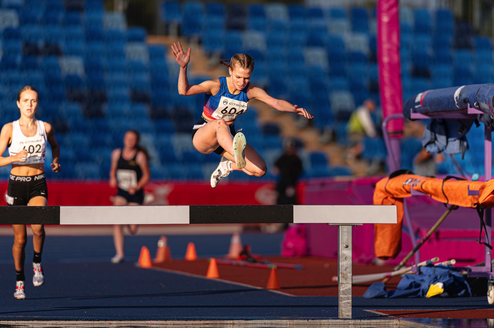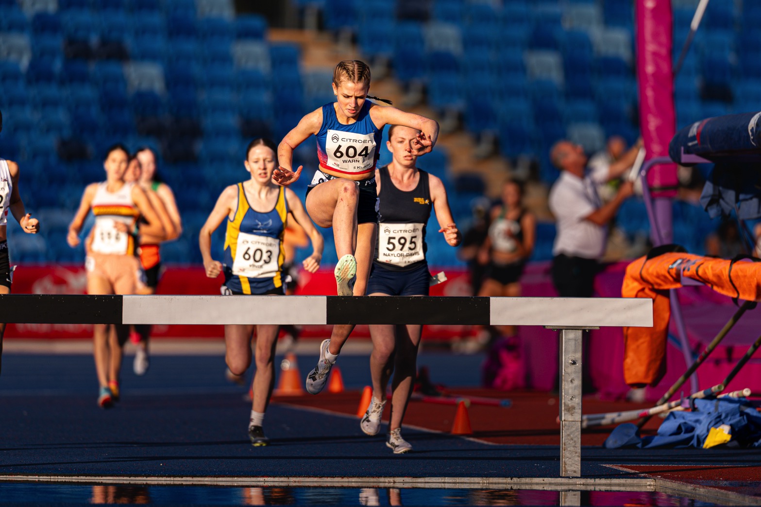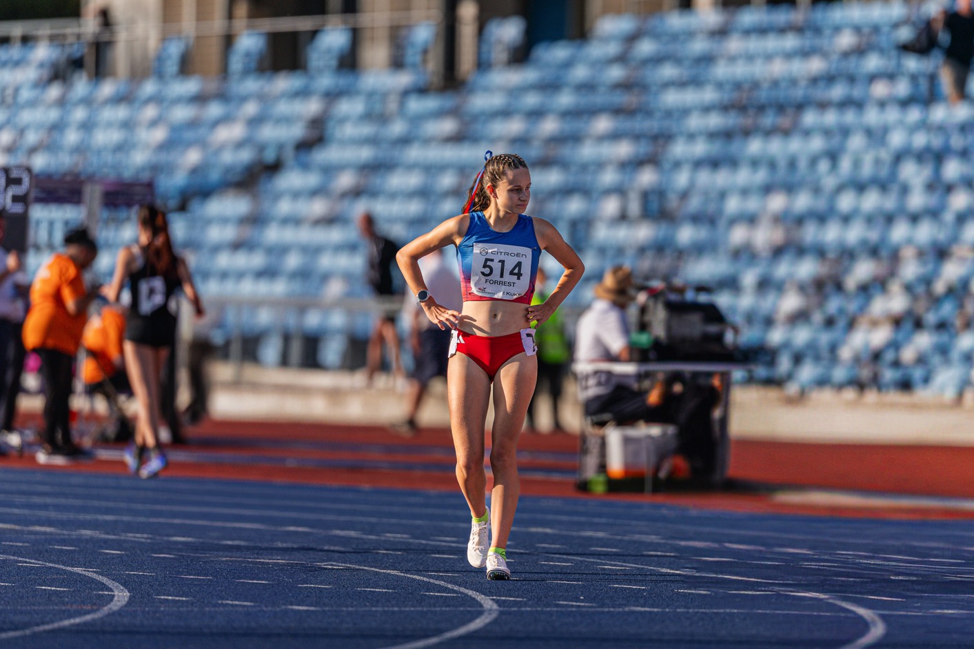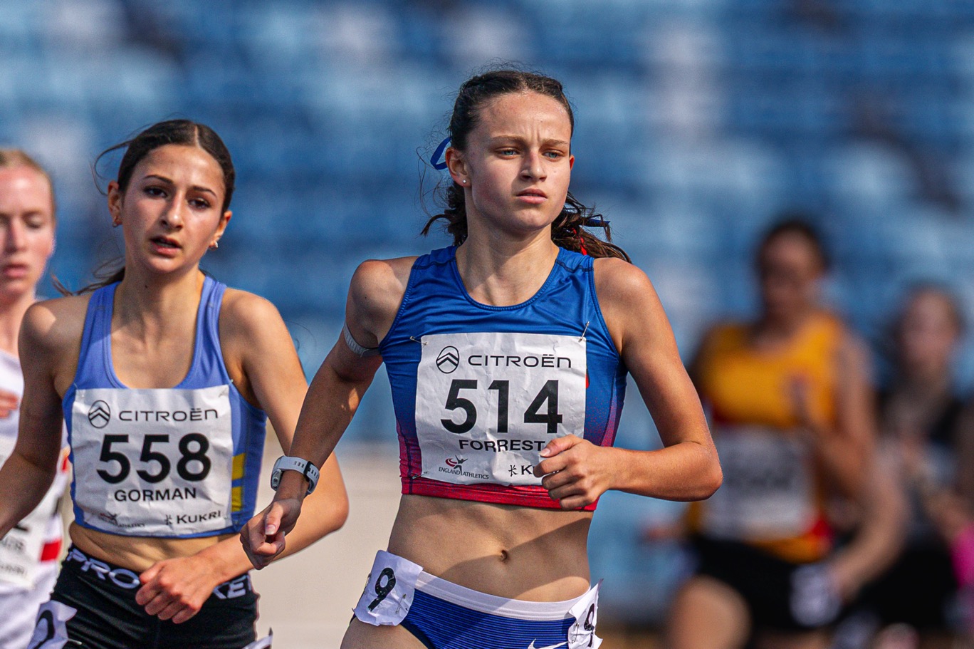 The English National age group Championships in Birmingham were a great end to the main competitive season for our athletes. Huge congratulations to Evie Warn who won bronze in the U17 1500m steeplechase. A brilliant effort which saw her take a decisive lead before an unfortunate water jump after which she showed real resilience to stay in the medals. Well done Evie – 5:22.63. Also running well at nationals over 1500m, and contending well with large competitive fields, were U15 Heidi Woodley – 8th in 4:39.48 and U17 Olivia Forrest – 11th in 4:43.71.