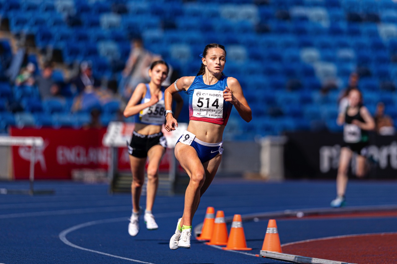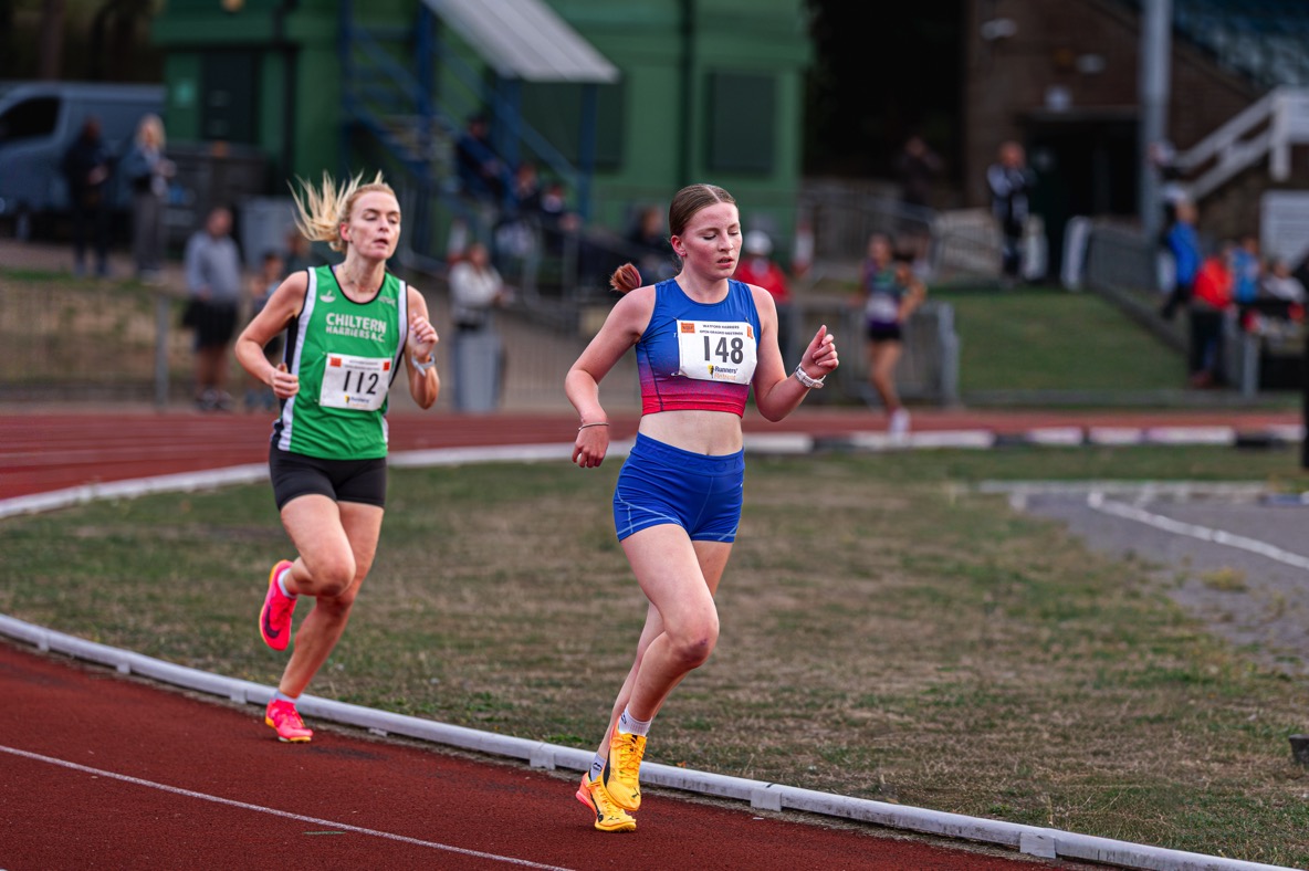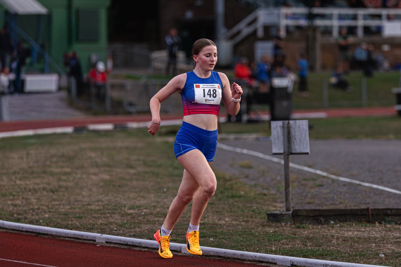 The English National age group Championships in Birmingham were a great end to the main competitive season for our athletes. Huge congratulations to Evie Warn who won bronze in the U17 1500m steeplechase. A brilliant effort which saw her take a decisive lead before an unfortunate water jump after which she showed real resilience to stay in the medals. Well done Evie – 5:22.63. Also running well at nationals over 1500m, and contending well with large competitive fields, were U15 Heidi Woodley – 8th in 4:39.48 and U17 Olivia Forrest – 11th in 4:43.71.