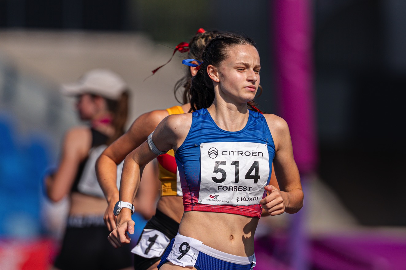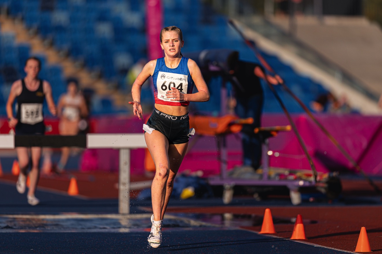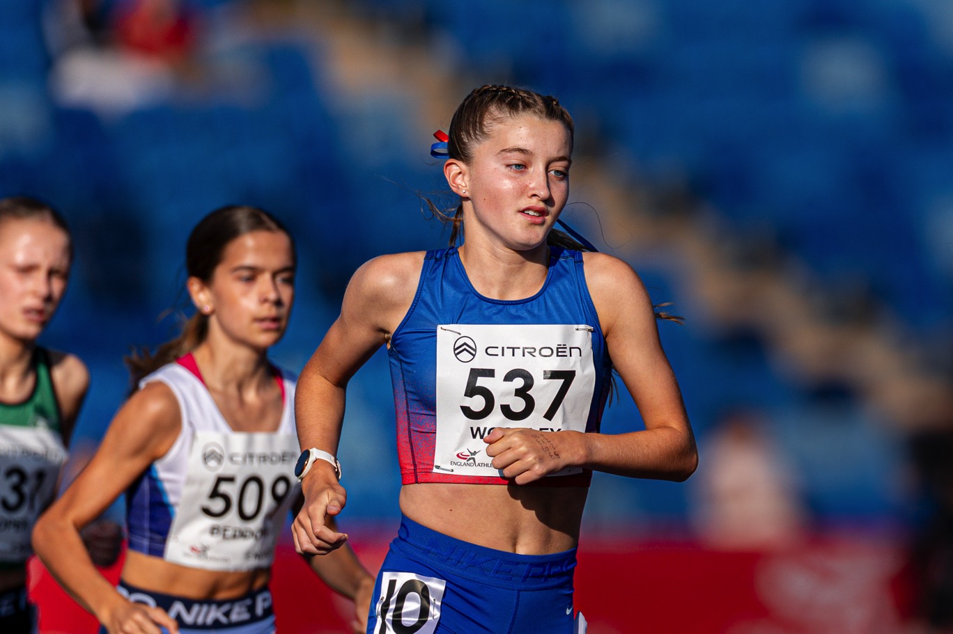 The English National age group Championships in Birmingham were a great end to the main competitive season for our athletes. Huge congratulations to Evie Warn who won bronze in the U17 1500m steeplechase. A brilliant effort which saw her take a decisive lead before an unfortunate water jump after which she showed real resilience to stay in the medals. Well done Evie – 5:22.63. Also running well at nationals over 1500m, and contending well with large competitive fields, were U15 Heidi Woodley – 8th in 4:39.48 and U17 Olivia Forrest – 11th in 4:43.71.