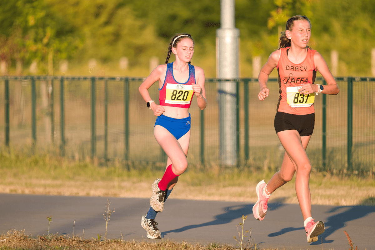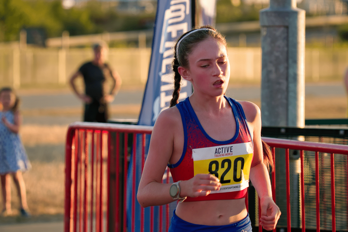 The Colchester Friday night event hosted by Active Training World was a test event for an Essex 5K road running championship. Two elite races – one male and one female – were held after a one mile open race and an open 5K. The entry standard for the elite race was a sub 21 minute 5K for women and a sub 17 minute 5K for men. Both Forrest sisters qualified for the elite race and lined up against a very strong field of mostly adult women. A very hot evening with many in the open event dropping out during the race didn’t suggest the best conditions, but both girls ran well with Isabel finishing in 20:31 and Olivia finishing in fourth place overall in a new PB of 18.11 – a superb 44 seconds off her previous best.