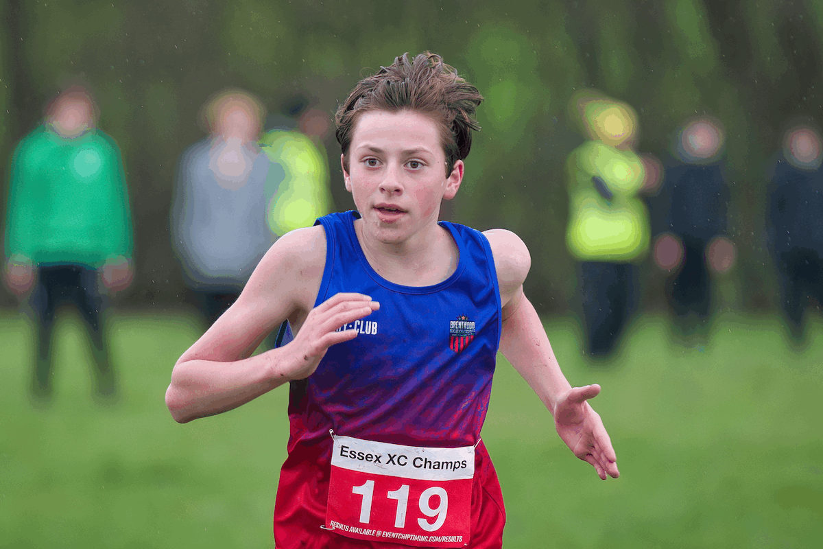 U13 boys 3k – Jude Hearn 5th (Essex vest) – 12:26, Ollie Johnson 43rd – 15:05