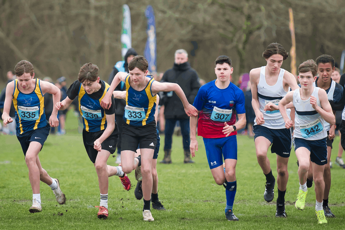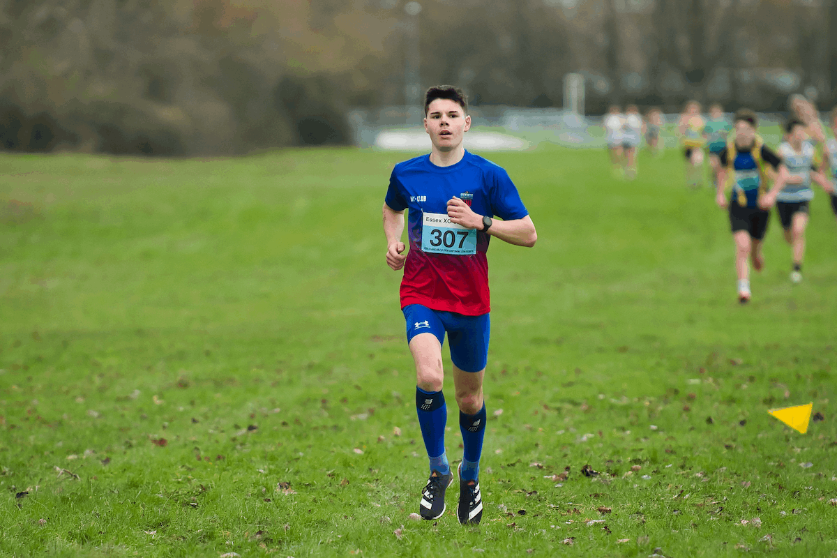 U15 boys 4k – Max Sanderson 6th (Essex vest) 14:01