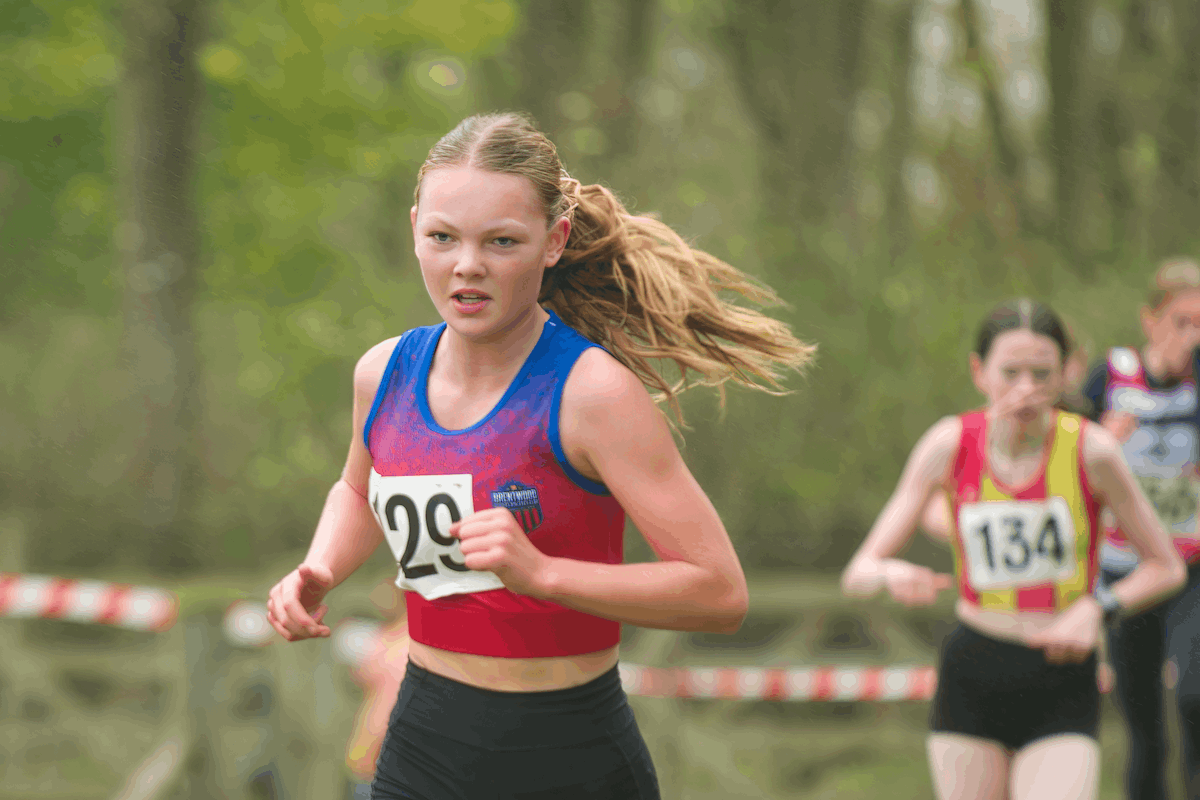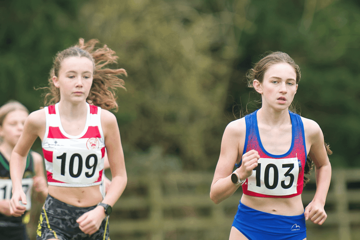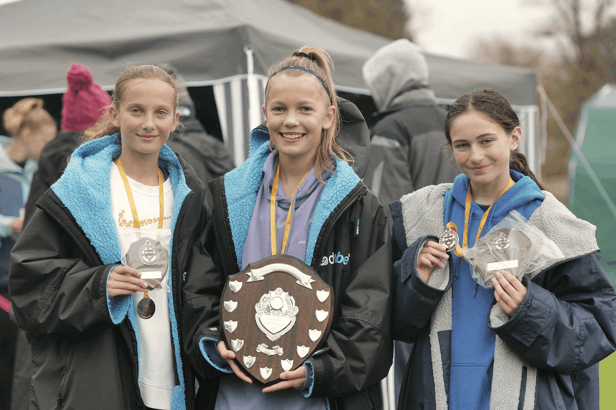 Our girls are determined though! The U13 girls led their 3K race from the front with Isabel Forrest taking an early lead down the hill before battling with a couple of girls then ultimately taking over at the front and pushing up the final hill to finish first (11:14). Rosie Quirk led the chasing pack for the first lap before bridging the gap to the leaders and showing her strength up the hill to take third place in the final sprint (11:24). Esme Thomas showed her resilience and determination throughout to push forwards and run at her best finishing eighth (12:11) ensuring the team finished in first place and took home the championship trophy.